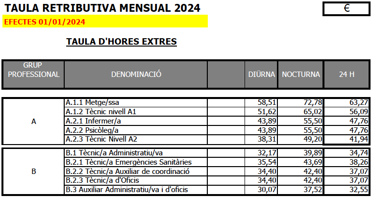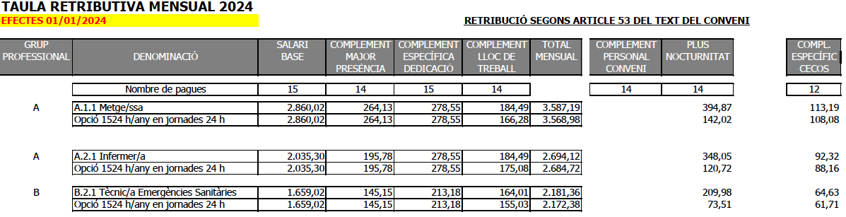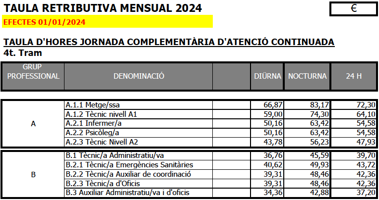Taules retributives MENSUALS Metge/essa, Infermer/a, TES