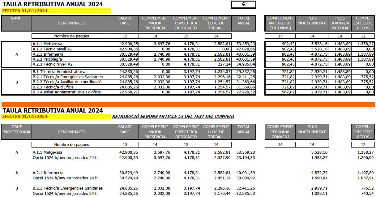 Al document trobaràs les taules salarials actualitzades a 2024.